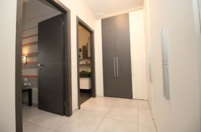 Il disimpegno prospiciente l’ingresso è fornito di armadiata su misura.
