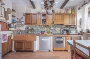 P.T: ingresso su salotto con camino, cucina abitabile in muratura con forno a legna, dispensa, bagno e cortile di proprietà.