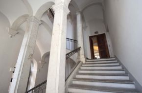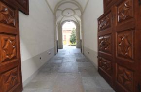 Soffitti a volta a crociera, pavimenti in listoni di rovere massello.