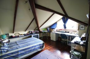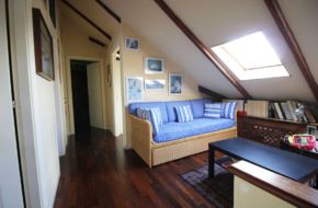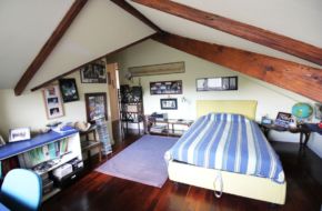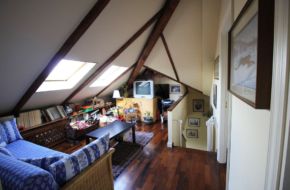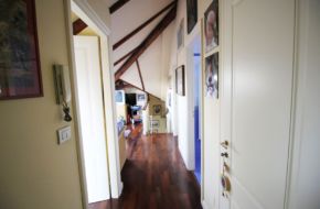 – al piano mansardato: salottino, tre camere, bagno, servizio e terrazzino.