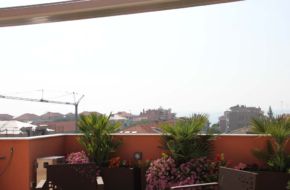 A 500 mt. dal mare, in palazzo di nuova costruzione, proponiamo in vendita splendido attico con terrazzo vista mare, al quinto piano con ascensore e composto di ingresso, ampio soggiorno/pranzo con angolo cottura, due camere, doppi servizi e box auto nel condominio.